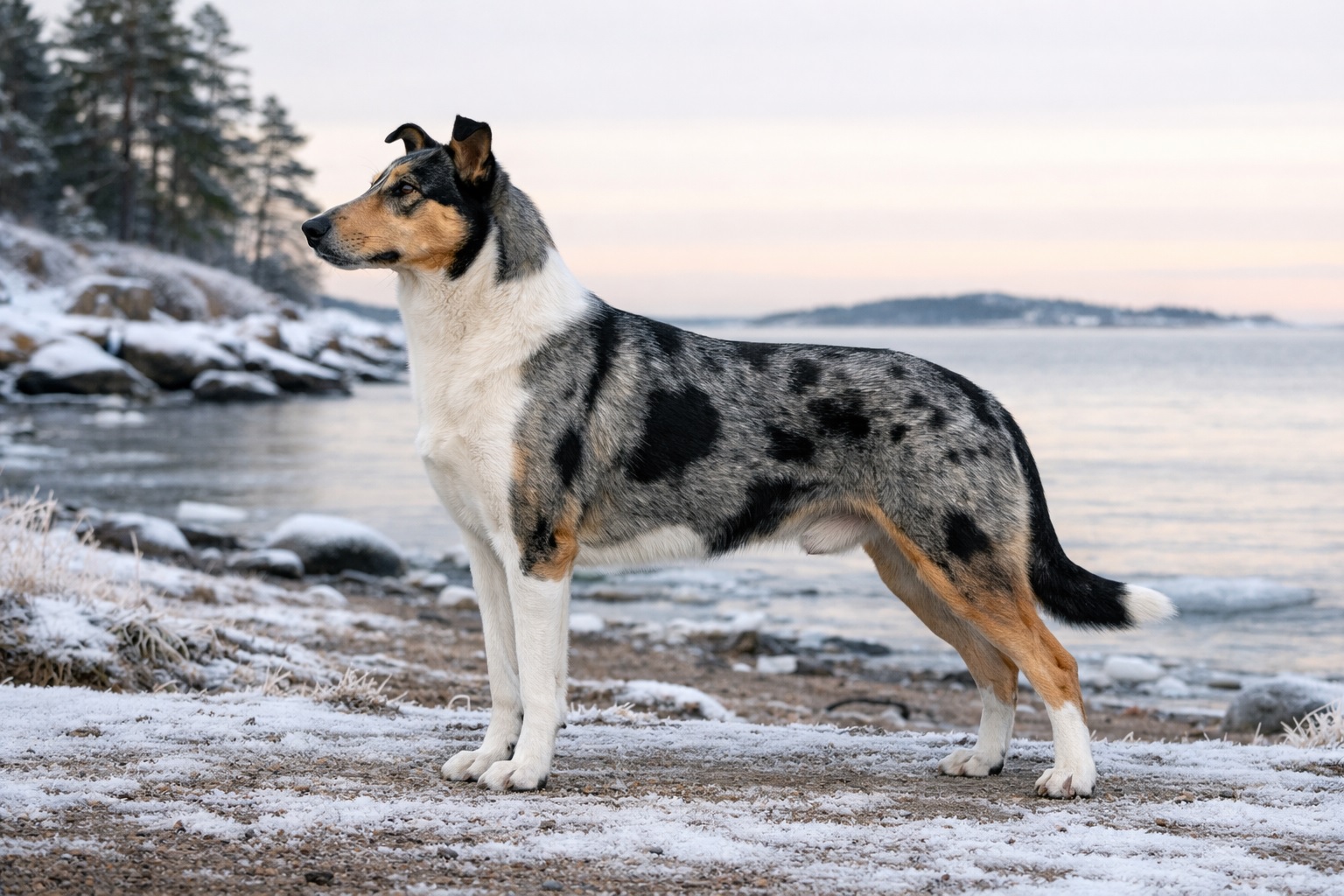 Väritys, säkäkorkeus: Blue merle, 58cm